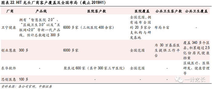 从产品线、院端和公共卫生端覆盖客户数量分析:卫宁健康产品研发布局规划非常清晰,并在医院端要拥有非常显著的优势,创业慧康在公共卫生端(基层卫生和区域卫生领域)优势非常明显,东华软件(东华医为)主要聚焦在三甲大型医院。