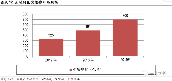 互联网医院信息化规模可达百亿。根据前瞻研究院和医信邦统计预测, 2019年互联网医院市场总体规模可达700亿元,鉴于互联网医院是以互联网技术手段增加远程功能,主要建设增量是信息化软硬件及平台的投入。如果按照15%信息化投入比例计算,2019年互联网医院信息化市场规模在105亿左右,其市场增速比例应于互联网医院数量增速相匹配,未来长期增长弹性也可达数倍之多。