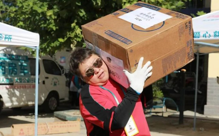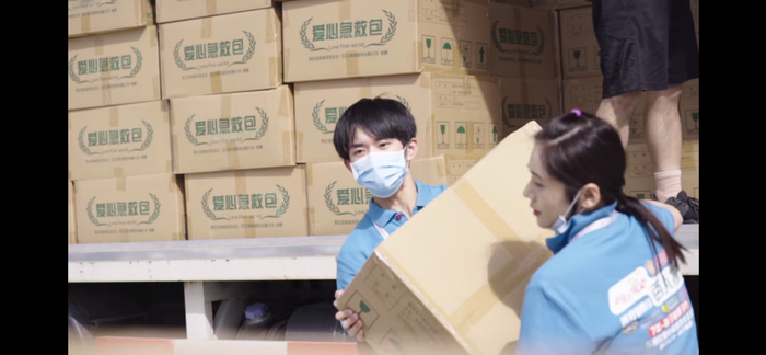 易烊千玺在公益项目中搬运物资(非本次抗疫项目)