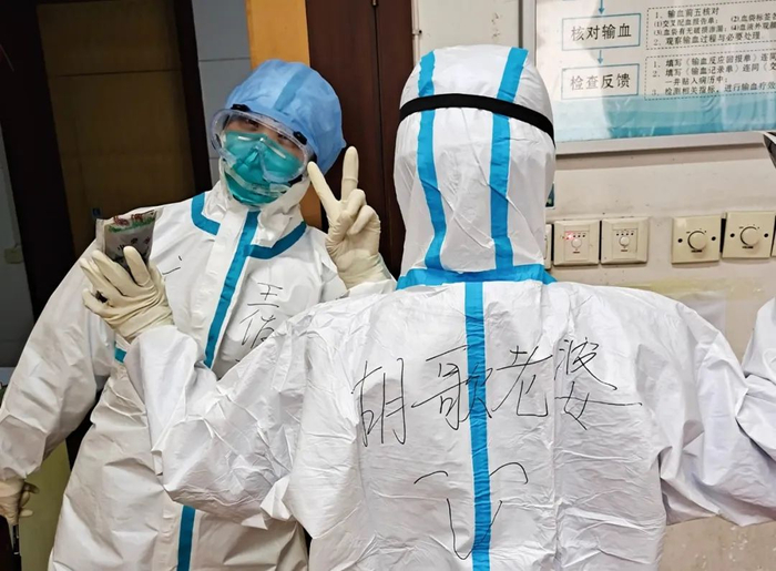 一名医护人员在防护服上给自己署名“胡歌老婆”,随后胡歌在微博上回复并鼓励