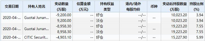 此次强平带来的股价闪崩,或也引起了其他股东的被动减持。除中信证券外,4月2日-3日,国泰君安先后减持了8958.30、9200.00万股,粗略计算成交金额约为1.27亿港元。减持之后,中信证券、国泰君安持有甘肃银行股份比例分别降至5.99%、3.94%。