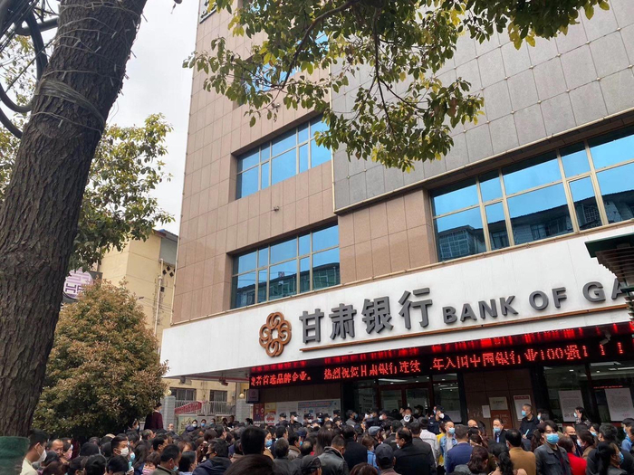 4月5日,甘肃银行在多个县城的支行营业网点出现挤兑。次日,部分县政府与央行、银保监会联合发布维稳通告,甘肃银行也公告称资金充裕,股价下跌属市场行为不影响储户存款,目前一切经营正常。