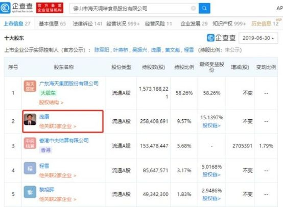 海天的核心竞争力是靠时间打磨出来的。产品要对得起良心,对得起消费者。调味品行业是需要沉下心、不计得失、经得起寂寞的一个行业。公开资料显示,2014年4月,海天味业上市不久,董事长庞康以25亿美元身家首次登上福布斯富豪榜,2019年,庞康以859亿元财富名列食品届最会赚钱大佬第1位。