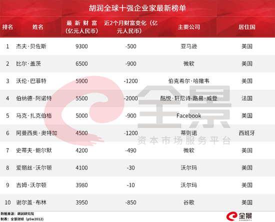 4月6日,胡润研究院发布《疫情两个月后全球企业家财富变化特别报告》,选取2020年2月-3月作为研究区间,对全球百强企业家的财富值,进行了最新排名统计。