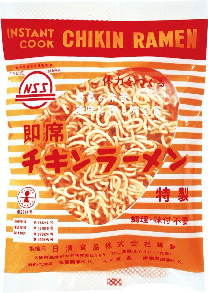 经过无数次实验失败后, 1958 年 8 月 25 日,安藤百福终于在日本大阪发明了世界上最早的方便面「鸡汁拉面」。他感慨说,「人生什么时候起步都不会太迟, 50 岁、 60 岁都可以有新的开始。」同年,安藤百福创办了日清食品集团,把「创造精神」作为公司的核心,以自创的词语「食足世平」——吃饱后世间才会太平,作为企业的理念。