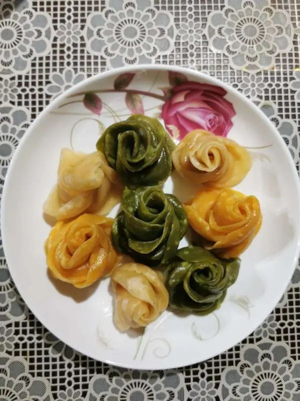 疫情期间,吕艳菊在家里做的玫瑰花样的面点。