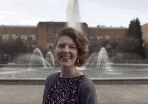 再把她P到喷泉广场: