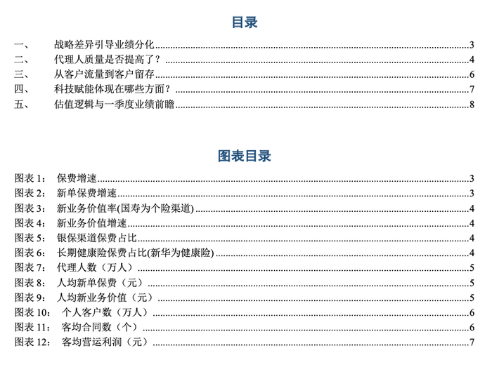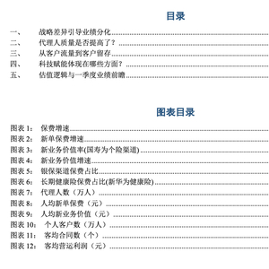 至此,我们窥见几家公司业绩表现的差别以及背后战略的差异,平安和太保坚持高质量发展,坚持以客户为中心,坚定价值转型,牺牲一定的增量来换取高质量的发展;新华更换管理层之后将规模提升到与价值并重的高度,力图先做大后做强,但当前新单的增量还未能拟补价值率降低带来的缺口;中国人寿在维持规模的同时将价值提至优先级,实现规模与价值的有机统一;中国人保在规模和价值两方面均有较大提升空间。