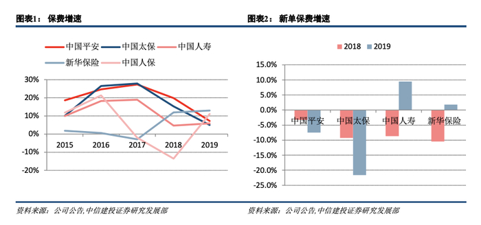 2019 年人身险行业相较去年虽有所回暖态势,但强监管叠加行业转型的继续深化,险企保费增长依旧疲弱,整个行业人身险保费同比增速 8.7%(2018 年+1.9%)。保险行业原来由人口红利驱动以及财富驱动的模式正在慢慢发生转变,增量时代步伐的放缓,意味着存量时代竞争的开启,保险公司逐渐迈入了“提质”的时代,几家上市公司的业绩表现出现较为明显的差异化,也体现出各家公司所处发展阶段以及战略发展方向的差异性。