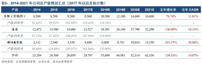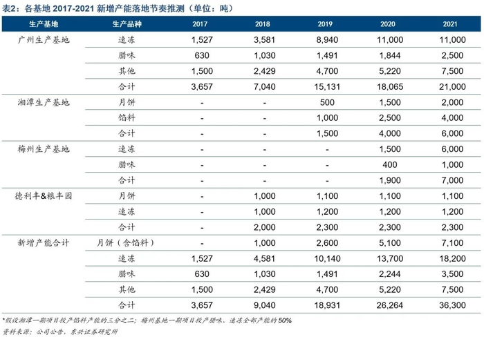 考虑到湘潭、梅州生产基地产能体量较大,我们保守估计2021年前湘潭基地馅料投放总产能的三分之二,梅州基地速冻、腊味产能投放50%;