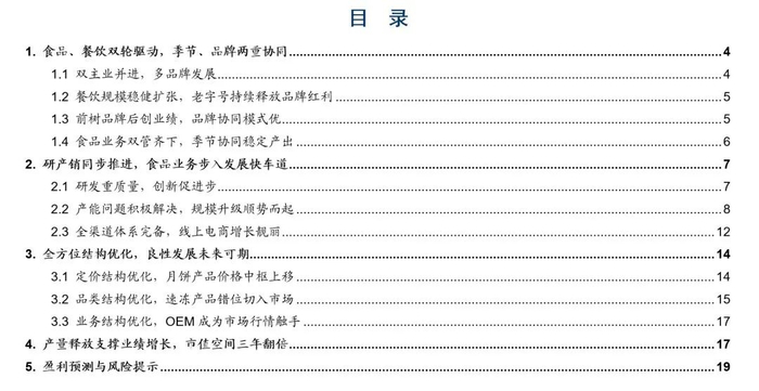 食品、餐饮双轮驱动,季节、品牌两重协同