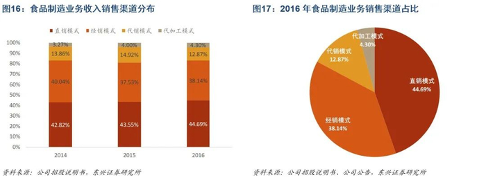 全渠道体系脉络清晰,产品下销顺畅高效。目前,在食品制造业务传统直销、经销等销售模式的基础上,公司已经逐渐建立起包括实体门店渠道、经销商渠道、电子商务渠道的三位一体全渠道成熟销售体系,极大提高了食品类产品的交易数量和下销效率,近年公司食品制造业务中月饼、速冻类产品的产销率高位维持在98%以上。