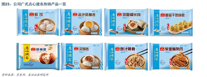 前台业务带起后台产品,协同效应建立产品优势。上世纪九十年代末,公司凭借自身擅长的广州点心差异化切入速冻产品市场,核桃包、叉烧包、虾饺等招牌产品随着公司餐饮、月饼的知名度提升而被更多人知晓,由广州酒家餐饮门店所带来的类似“前店试菜、后厂量产”的运营模式同样为公司的速冻产品带来了品牌协同溢价,近五年平均毛利率(32.88%)超过速冻米面同业水平(三全26.64%/安井26.71%)。