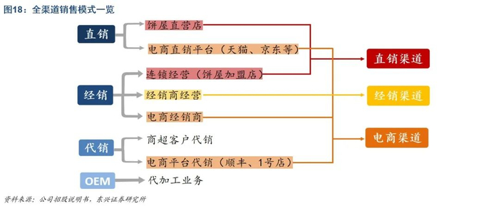 食品制造业务直营经销并重,餐饮业务以直营为主。公司食品制造业务采用直销、经销、代销和代加工(OEM)四种模式,以直营、经销为主,二者合计占比超过80%。截至2019年6月,公司及其下属公司拥有超过200家饼屋直营店(含加盟店),主要位于广州市区及周边城市,利用“利口福”品牌进行产品销售,直营店由利口福公司统一供货,统一配送。而公司餐饮业务以直营模式为主,截至目前,公司在广州市不同商圈旺地设立了19家餐饮直营店,利用“广州酒家”为主品牌提供餐饮服务,餐饮直营店大宗商品的采购由公司采购中心统一管理,各店独立经营。