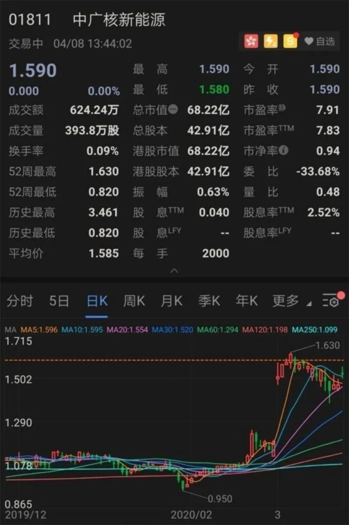 中广核新能源近期股价走势   图片来源:富途牛牛