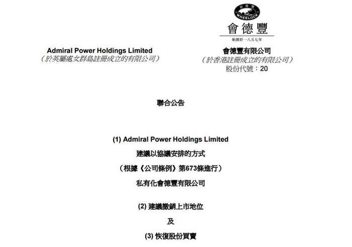 2月底,香港老牌地产公司会德丰公告,大股东吴光正家族欲用81.5亿港元现金加上旗下九龙仓置业和九龙仓集团股权置换的方式将公司私有化。