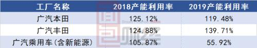 图3:广汽集团2018-2019年主要工厂产能利用率