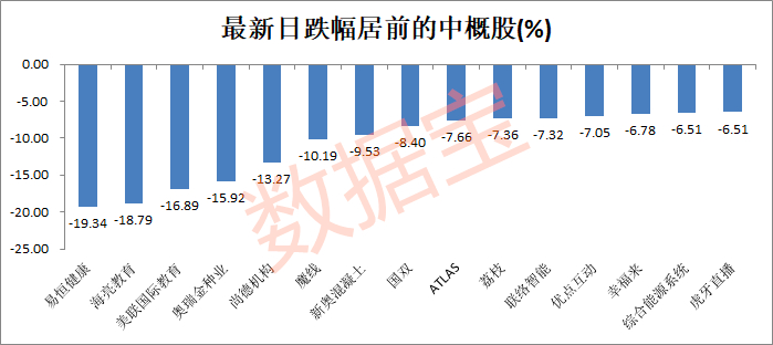 美国股指的上涨未能带动中概股,根据收盘数据显示,赴美上市的多只中概股股昨夜表现不佳。易恒健康大跌19.33%,海亮教育大跌18.79%,美联国际教育下跌16.89%,尚德机构跌幅近16%。