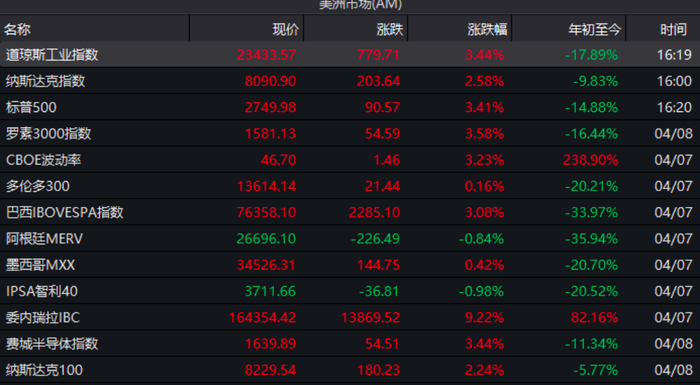 美股最近行情可谓是飘忽不定,跌一天涨一天。继上一日下跌后,美国三大股指最新交易日迎来了上涨。截至收盘,道指上涨近800点,涨幅3.44%,纳斯达克指数上涨2.58%,标普500指数上涨3.41%。