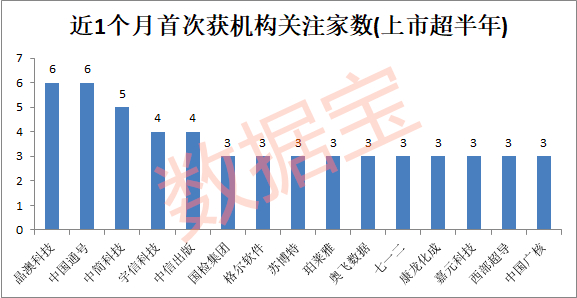 其中,5股获5家以上机构扎堆关注,去年12月份上市的邮储银行获10家机构首次关注,其中浙商证券及中信证券给出了7元以上的目标价;晶澳科技获6家机构扎堆关注,安信证券和东北证券分别给出了15.6元和16元的目标价,公司最新收盘价13.39元。上市半年以上,且获得3家以上机构推荐个股共计15只,除晶澳科技外,中简科技、宇信科技、中信出版3股均获得4家以上机构首次关注。
