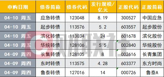 财联社4月9日讯,本周又一波密集申购的小高峰到来,周四周五两日,有多达7只可转债开放申购。名单如下:长集转债、鲁泰转债、东时转债、应急转债、起步转债、华统转债、滨化转债。