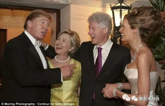 偶然看到特朗普早年间与克林顿夫妇谈笑风生的照片,特朗普还真有些意气风发的样子。这是克林顿总统夫妇参加特朗普的第三次婚礼。当时,作为政客的克林顿夫妇只是把特朗普当作一个喜欢结婚的商人,眼神都很放松,甚至有点天真。殊不知,特朗普十年后华丽转身为“高级别政客”。