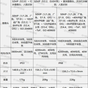 华为P40系列参数对比(图源微博)