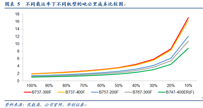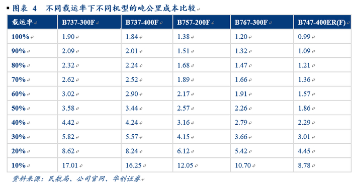 相同载运率下宽体机成本是窄体机的50%-60%,而载运率越高,单位成本越低。