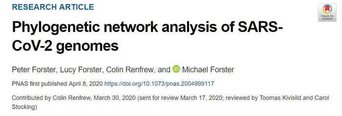4月8日,来自英国剑桥大学麦克唐纳考古研究所等机构的研究人员在国际权威期刊《美国国家科学院院刊》(PNAS)发表文章《新冠病毒基因组系统进化网络分析》,认为全球范围内的新冠病毒可划分三种类型,且在美国大量流行的可能是“原始类型”。