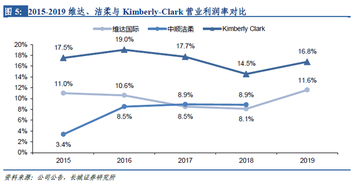 对比海外成熟市场,再论生活用纸成长空间。尽管我国生活用纸零售市场规模已经位列全球首位,但在量和价两个维度都还具有广阔的提升空间。核心驱动因素在于:1)使用场景的丰富化与渗透率的提升将提高人均用纸量:一方面我国卫生纸的使用量仍然较低,随着城镇化推进渗透率还将稳定提升;另一方面,厨房纸这一品类在我国市场还在导入阶段,而我国的烹饪方式决定了对厨房纸在我国是有丰富应用场景的,限制因素主要在于消费力和普及度而非需求,因此厨房纸市场有望随着消费力提升及95后在日用消费市场的崛起而进入快速发展阶段。2)生活用纸品类细分化的趋势将更好的满足消费者在不同用途下的需求,通过提供更高附加值而实现价格和使用量的双重提升:“本色纸”、“乳霜纸”的出现意味着抽纸市场已经逐渐呈现出产品细分化的趋势,这些产品可以切中一些细分痛点,在创造更高附加值的同时渗透细分场景提高使用量。推荐关注生活用纸龙头【中顺洁柔】、【维达国际】,品牌及渠道壁垒将有助于龙头企业份额的提升,中长期看利润率中枢有望随着规模增长及附加值的提高而提升(对比Kimberly Clark仍有5pcpts的提升空间)。
