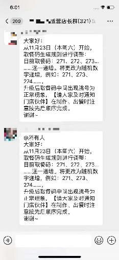 店长苗思思也向《财经》记者证实了“跳号”的存在,并透露这种操作是从2019年11月开始的。“当时突然发了运营事务通知,告诉我们之后会跳随机单号,不连续了,”这位店长说。但是,店长们每天都会根据实际销售情况统计订单量、商品数,并报备到区域工作群里。统计时并不会用取餐码计算。