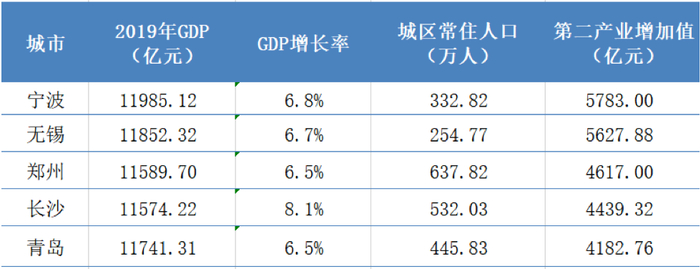 目前,青岛与宁波、无锡、郑州、长沙同处一个梯队,几个城市之间最大的差距就是几百亿元。在通往1.5万亿的路上,它们是青岛有力的竞争者。