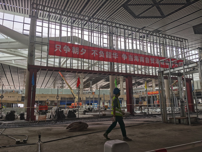 一边是椰风阵阵的碧海蓝天,一边是焊花飞舞的繁忙景象,今年突发的疫情没有阻断海南自贸港建设的脚步。