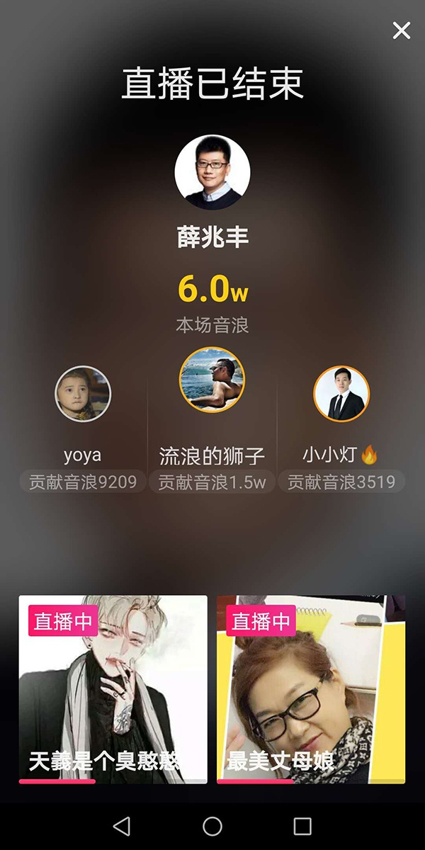 在卡机中,薛兆丰结束了自己在抖音上的直播首秀。