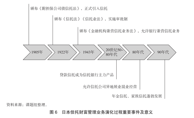 自20世纪80年代起,日本信托业进入调整与创新阶段。日本政府不断放宽信托业的市场准入,推动信托业由原来的分业经营走向混业经营。为应对泡沫经济破灭后经济形势的变化,日本政府在90年代开展金融体制改革,通过“从储蓄到投资”战略鼓励国民更多参与金融市场投资,这一阶段也是年金信托、家族信托的蓬勃发展时期。信托从金融中介功能转向金融功能与财产管理功能并重。