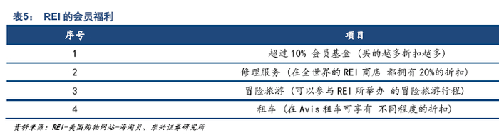 零售商未来之路:构建一站式户外服务,以美国REI公司为例。REI是美国也是全球最大的户外用品连锁零售组织,最大的特色是其组织形态是合作社,终身会费只要20美元,购物时便可以享受会员折扣,另公司有REIadventure业务板块,会员可以参加公司组织的户外活动。通过会员制,以及线上线下相结合,商品与服务相结合。公司保证了户外活动用户对公司具备十分强的黏性。