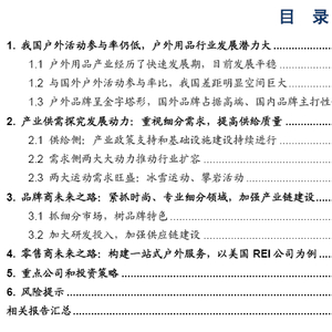 风险提示:户外消费习惯培养不及预期,人均收入水平增长不及预期,品牌培养不及预期。