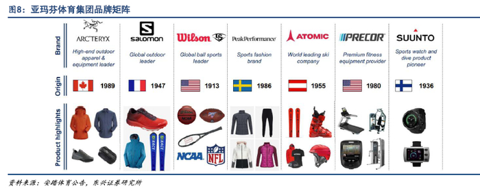 通过并购切入超高端户外,中国区发展潜力大。亚玛芬旗下拥有加拿大奢侈级户外装备品牌始祖鸟(Arc’teryx),以及法国山地户外越野品牌萨洛蒙(Salomon)等多个细分领域领导品牌。安踏打破了国内公司没有高端户外品牌的格局,形成了一个运动+户外的泛体育品牌集团。未来亚玛芬公司三大方向:1)大品牌,重点发展始祖鸟等三个品牌;2)重点发展直营渠道。3)重点发展中国市场。