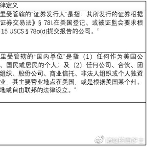 全国性证券市场包括我们耳熟能详的纽约证券交易所(NYSE)、纳斯达克市场此类[6]。如果该公司在美国的全国性证券市场上进行证券交易,那便符合FCPA下“证券发行人”的定义,受到FCPA的管制。国内在美国全国性证券市场上市的包括百度,网易。但如果公司在场外交易市场交易,如果该公司有向证监会定期提交报告的义务,那也符合FCPA下“证券发行人”的定义,受到FCPA的管制。