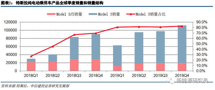 2019年各个季度,Model 3销量占比均稳居80%以上。