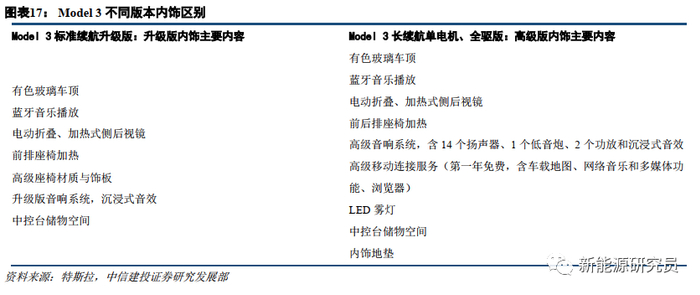 国产(将国产)的特斯拉Model 3产品比较见下表。