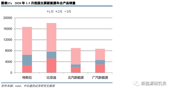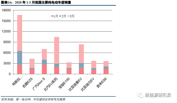 特斯拉上海工厂受疫情影响有限。虽曾于1月30日起暂时关闭,但2月10日开始复产,2月20日即全面复产;线下门店2月17日开始逐步恢复营业。总体而言,2020年1-3月,特斯拉Model 3国产化效果显著,仅以Model 3标准续航升级版一款车型即取得了较高的销量:
