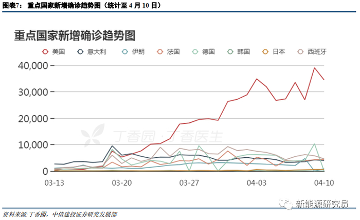 美国是全球新冠疫情累计确诊、现存确诊量最大的国家。至2020年4月11日中午,其有现存确诊人数逾45万人。疫情已严重影响了制造业,通用、福特、FCA美国汽车业三大巨头3月20日宣布暂时关闭北美地区所有工厂。出于防疫需要,特斯拉也置身停产危机之中。