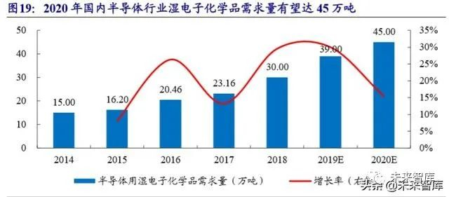 2.1.2、 2020 年国内半导体用湿电子化学品需求量 45 万吨