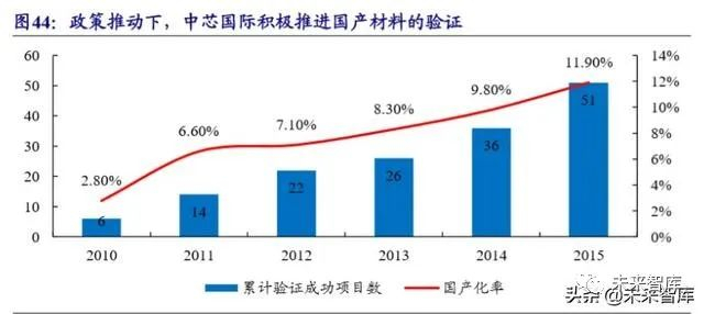 由于湿电子化学品在行业发展中的重要性突出,我国在政策上鼓励该产业的发 展。近十年来,湿电子化学品也已成为我国化学工业中一个重要的独立分支和新增 长点,我国把新兴产业配套用电子化学品作为化学工业发展的战略重点之一和新材 料行业发展的重要组成部分,在政策上予以重点支持。“十五”、“十一五”期间我国 把湿电子化学品的研发列入“863”计划;在 2008 年国家科技部下发《高新技术企 业认定管理办法》中,明确列出超净高纯试剂属于国家重点支持的高新技术领域。在 2014 年工信部和发改委联合制定的《2014-2016 年新型显示产业创新发展行动计 划》中提出,“引导面板企业加强横向合作,对上游产品实现互信互认,鼓励面板企 业加大本地材料和设备的采购力度”。在国家政策的引导下,下游本土领军企业积极 开展对国产材料的合作研发、验证及配套采购,根据《集成电路产业全书》的数据, 中芯国际国产材料累计验证成功项目从 2010 年的 6 个增至 2015 年的 51 个。