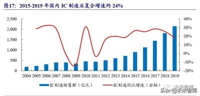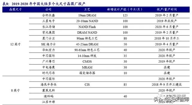 近两年中国大陆晶圆厂进入投产高峰期。随着我国经济结构调整,新兴产业, 计算机、消费电子、通信等产业规模将持续增长,大大拉动了对上游集成电路需求, 同时,国家信息安全战略层面不断加大对集成电路产业的政策支持力度,我国半导 体市场持续快速增长。2017 年以来,中国大陆晶圆厂进入投产高峰期,根据中国半 导体行业协会数据,2019 年国内 IC 制造业产值突破 2,000 亿元,近五年复合增速达 24.28%。2018 年国内 12 英寸、8 英寸、6 英寸晶圆平均产能分别为 80.4 万片/月、 86.4 万片/月、73.8 万片/月,中国电子材料协会预计,随着多座半导体十二英寸厂投 产,2019 年国内 12 英寸晶圆平均产能将达到 127.5 万片/月,2020 年国内 12 英寸晶 圆平均产能将达到 150 万片/月。