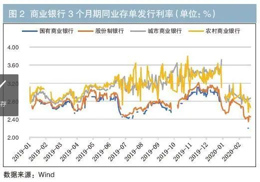 2019年5月以前,国有商业银行、股份制银行和城市商业银行、农村商业银行的同业存单发行利率之间的利差相对平稳,但在5月24日包商银行被接管后,市场对中小银行的信用水平重新评估,银行间市场的流动性分层现象更加显著。为此,央行采取了为发行同业存单提供增信、扩大再贴现额度和质押品范围等一系列措施,中小银行同业融资较难局面得到缓解,但2019年同业存单发行利率仍保持在相对高位(见图2)。这一点增加了中小银行灵活进行主动负债以及调控流动性水平的难度,对其流动性风险管理能力提出了更高要求。
