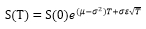 蒙特卡洛模拟价格路径的公式如下:其中μ为资产的年化收益率,σ为资产年化波动率,ε为服从标准正态分布的随机数,S为资产的价格,T为时间: