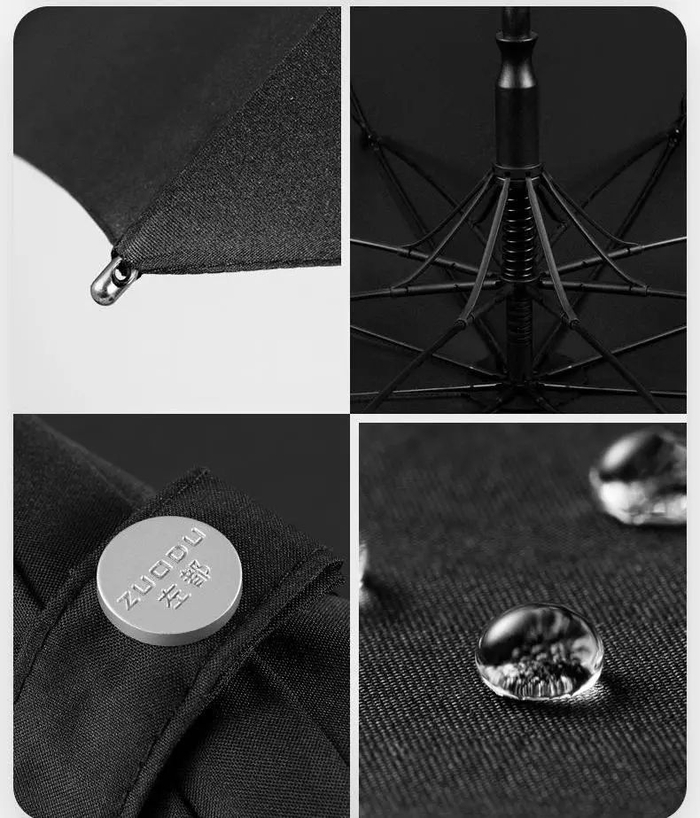 而左都的伞,骨架采用高碳纤维+玻纤材质,坚韧且富有弹性,甚至还能扛住8级大风。