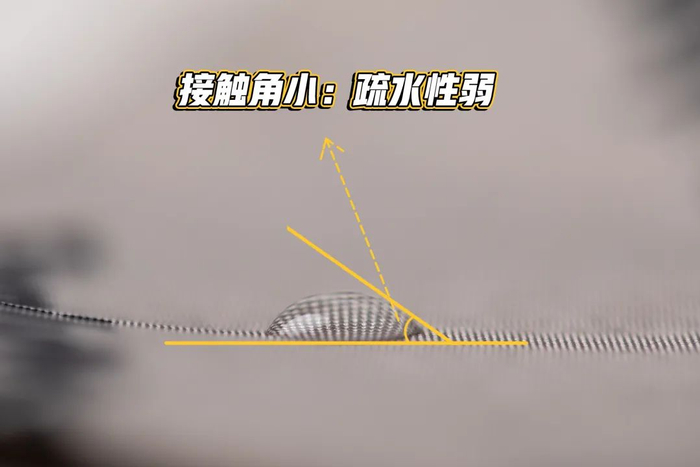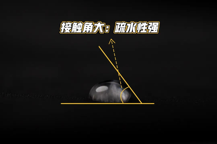 疏水能力可以用接触角说明,液体与固体表面之间的接触角越大,润湿性越小,疏水性越强。